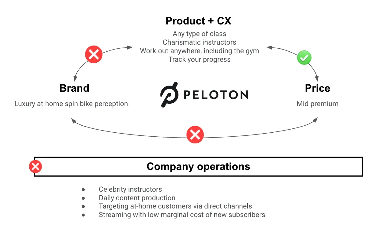 Once you map Peloton’s Brand Flywheel, the weak points become clear. Four challenges, all connected.