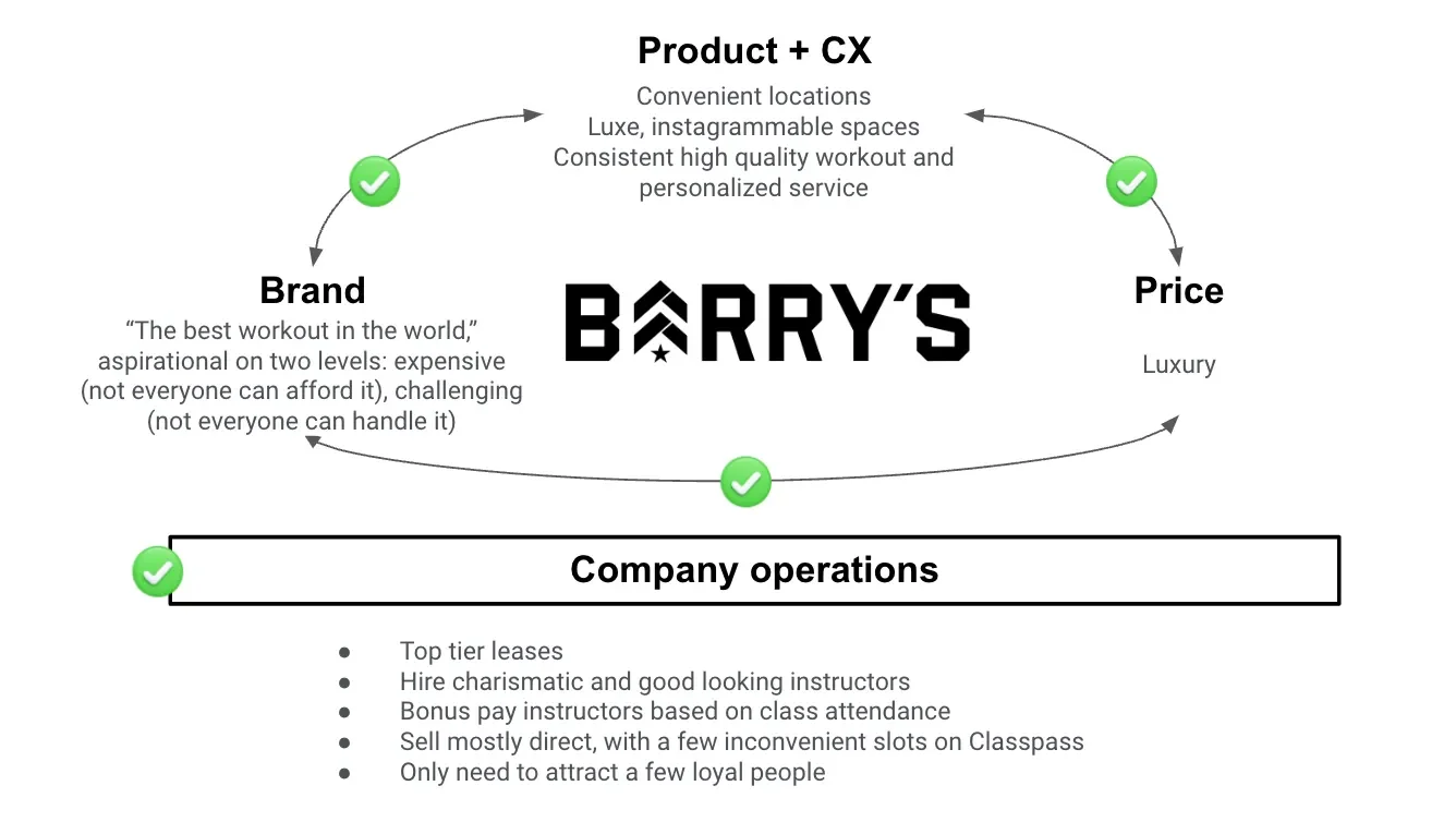 Barry’s Bootcamp can. Barry’s depends on scarcity. Limited spots, high prices, luxury touches. That is the flywheel. Peloton’s is the opposite.